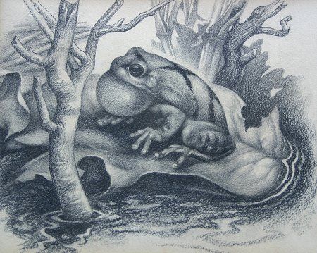 Bullfrog Illustration for Winter Sleeping Wildlife by Bill Barber