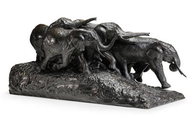 signed and dated, 'Carl E. Akeley. / © 1915 -,' inscribed with title 'The Charging Herd,' numbered and inscribed 'cast for / John T. McCutcheon / limited to ten copies No. 1 / C.A. 11-19-15' and stamp | |