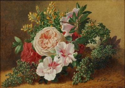 Still Life of A Pink Rose, Cut Flowers and Foliage