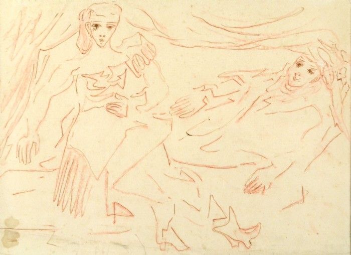 Vilande och sittande figurer
