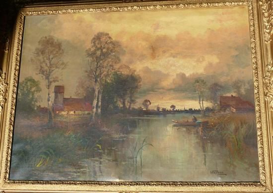 | River landscape with church and figure in a punt | |
