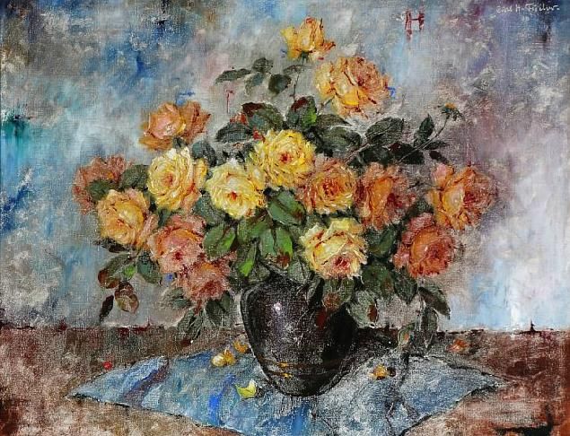 Still life with roses in a vase.