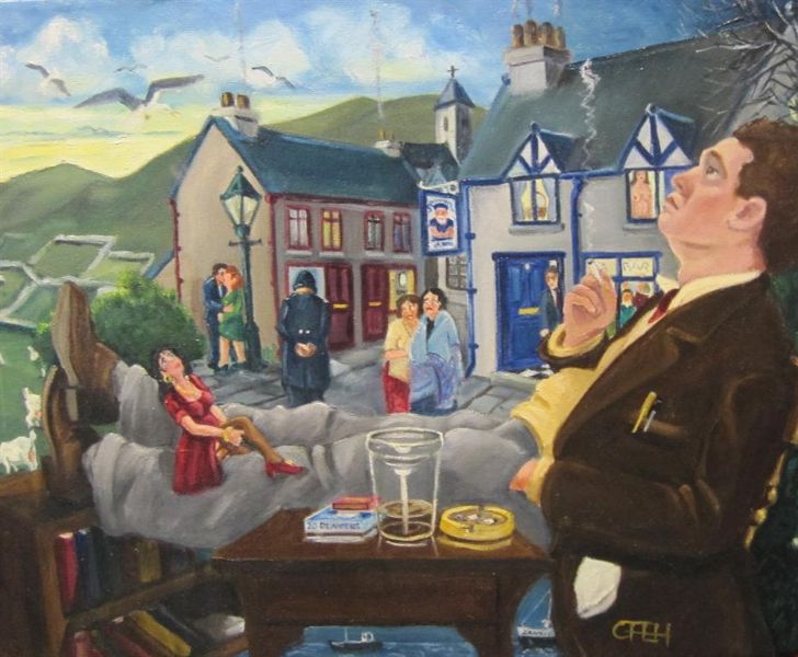 Needs more Characters(Portrait of Dylan Thomas with numerous characters from Under Milk Wood)