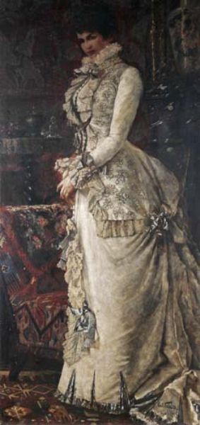 | Saloninterieur mit Ganzkörperporträt einer Dame in Gesellschaftskleid | |