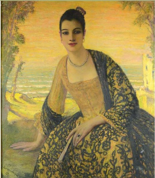 PORTRAIT OF A YOUNG LADY WITH FAN.