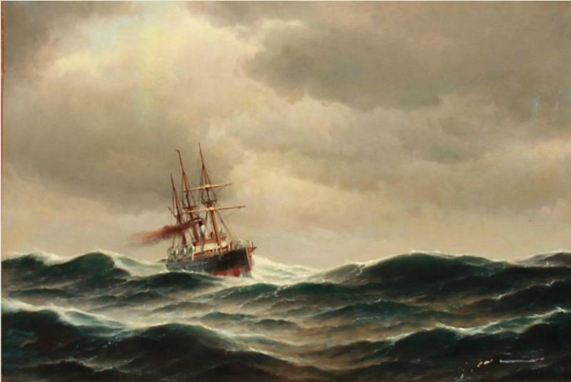 A passenger steamer in high waves