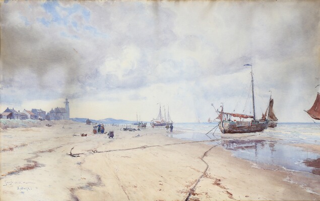 | Dutch coastal scene from Katwijk with anchored fishing boats | |
