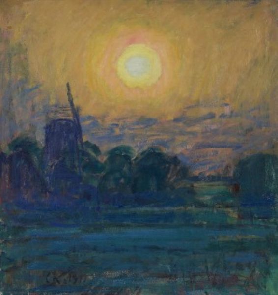 Solnedgång vid kvarn.