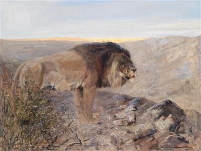 Lion in an Evening Landscape