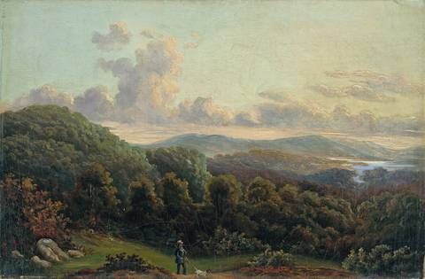 HUNTER IN MOUNTAINOUS LANDSCAPE