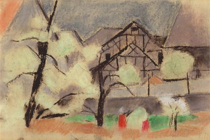 Falkengarten in Diessenhofen mit Scheune. Um 1930.