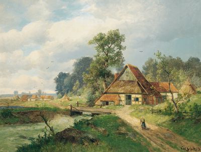 Lower Rhine Landscape with Stream and Farmhouse
