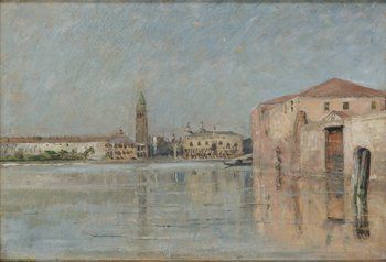 | Venetianskt kanalmotiv med dogepalatset i fonden | |