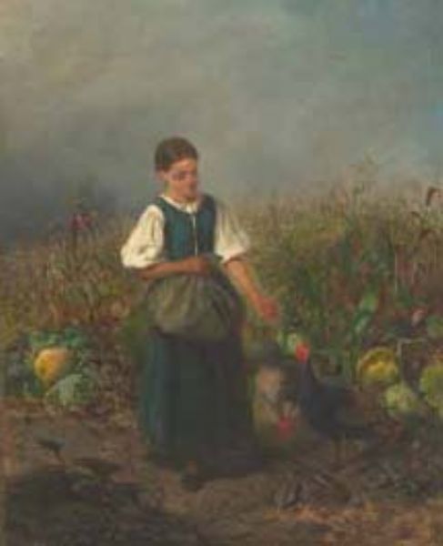 COUNTRY GIRL FEEDING TURKEYS IN A CORNFIELD