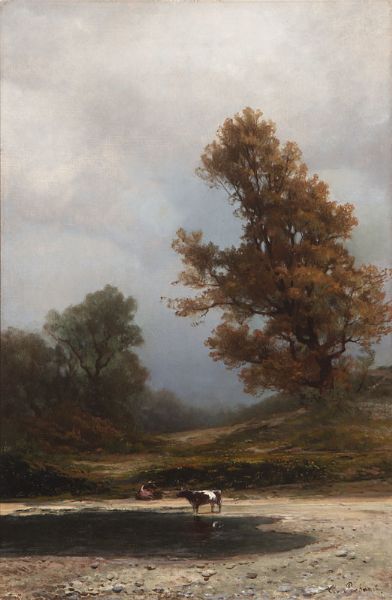 Cows Watering in a Landscape, Likely California