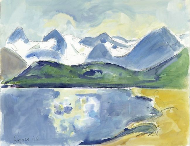 Bündner Berglandschaft mit See. 1960.