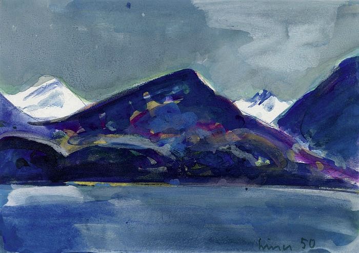 Engadiner Landschaft mit See. 1950.