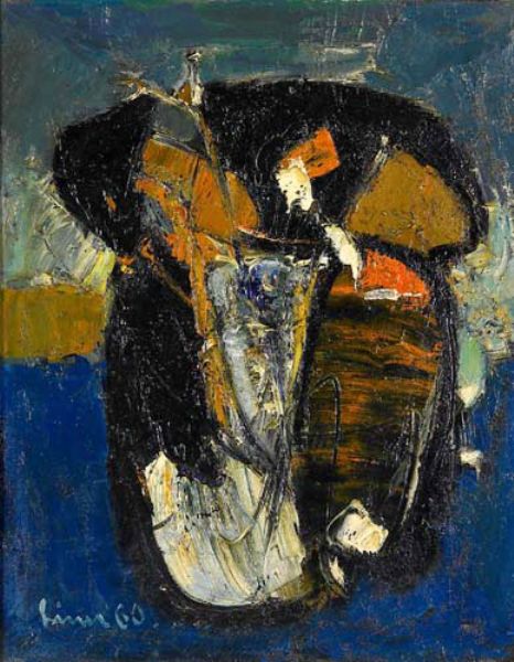 Komposition blau-schwarz-ocker-weiss. 1960.
