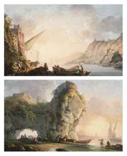 Marina con pescatori; e Marina con arco roccioso e figure