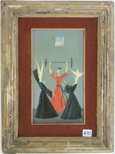 | Sollevatore di Jesi" (Lift of Jesi) depicting a cardinal lifting a barbell while nuns cheer | |