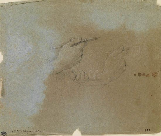 Study of Hands Holding Drawing Chalk.