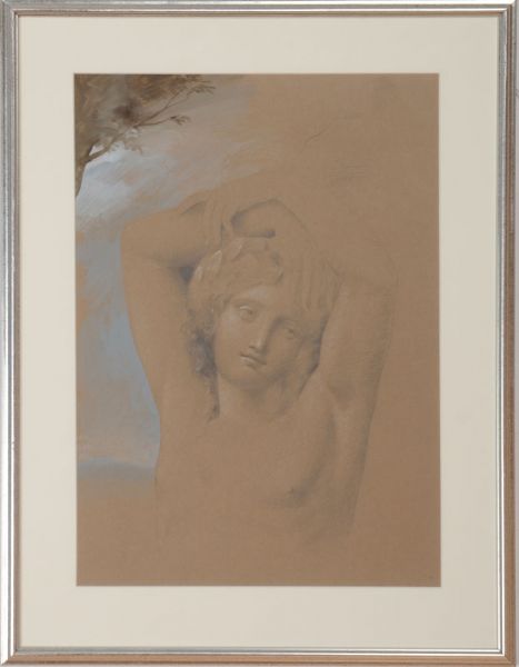 Pencil and gouache with chalk highlights on brown wove paper