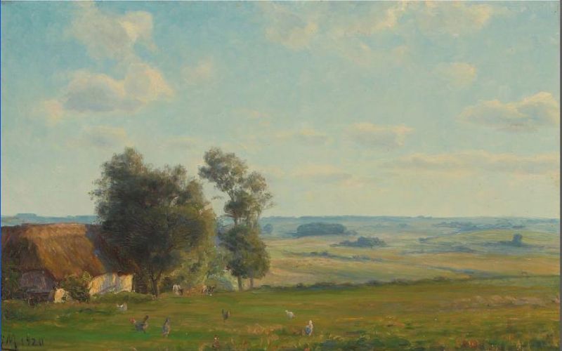 Landscape with farm house and animals