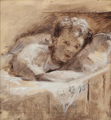 Portrait of Carla Mundt Luplau 5 years old. Inscribed and dated C. M. L. Sorø 28/7 95 and inscribed verso Malet af E. Mundt (Painted by E. Mundt). Oil on canvas laid on panel. 17×16 cm. | |