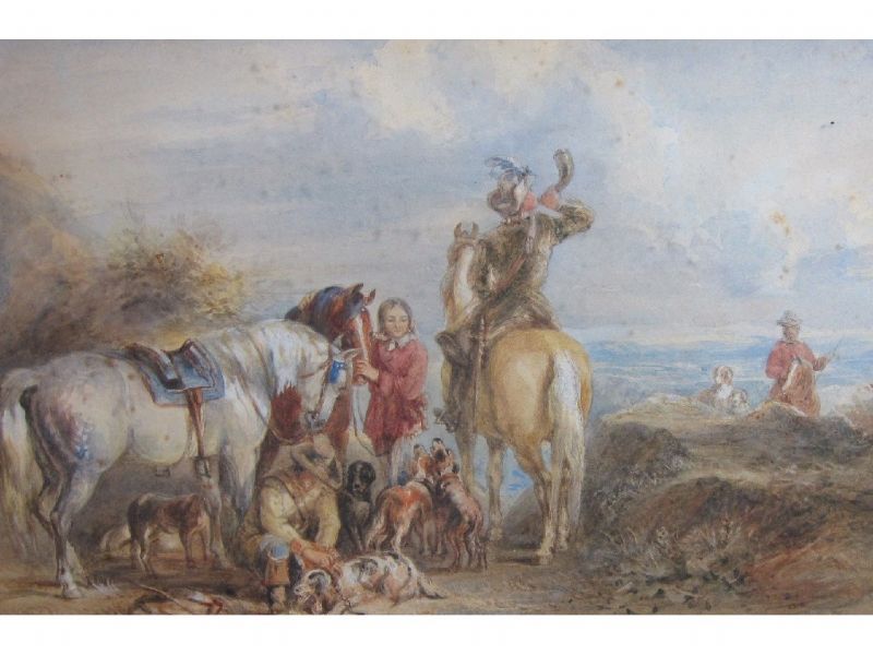 Sportsmen and Hounds resting by a Track