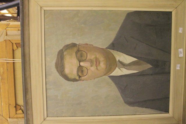 Half-length portrait of a Man in grey suit and glasses