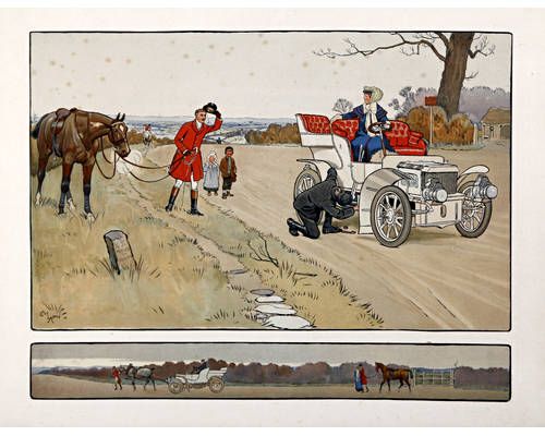 | An early motoring humorous encounter between a motorist and a huntsman | |