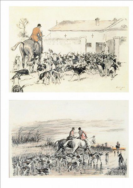| The Start of the Day, the Whipper-In with Foxhounds beside the Kennels; "The End of the Day" | |