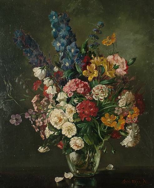 Still life of delphiniums