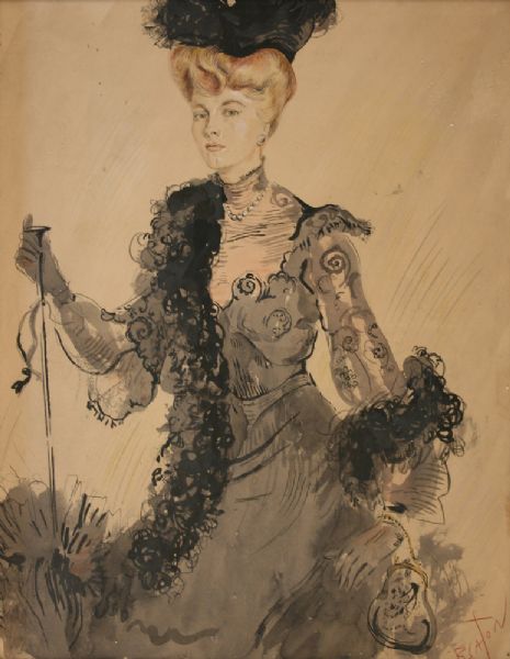 | Three-quarter Length Portrait of a Lady wearing a Black Dress and holding a Parasol and Purse | |