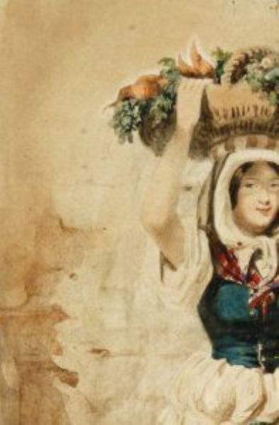 Italienerin mit Gemüsekorb auf dem Kopf