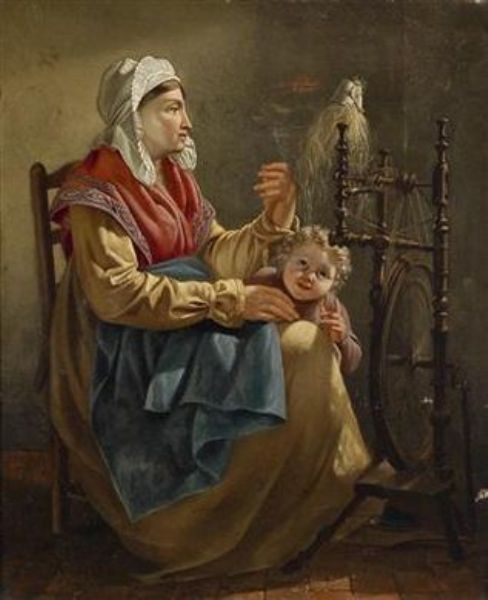 Mother at the Spinning Wheel with Child