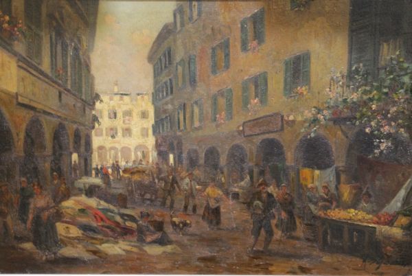 Continental market scene with numerous figures
