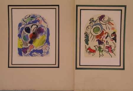 | Zwei Farblithographien nach den Aquarellen für die Fenster der Synagoge bei Jerusalem | |
