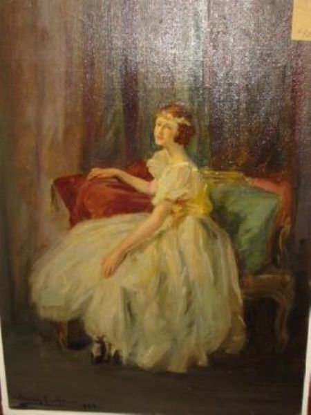 | The Dancer"", Portrait of a Ballerina sitting on a Sofa | |