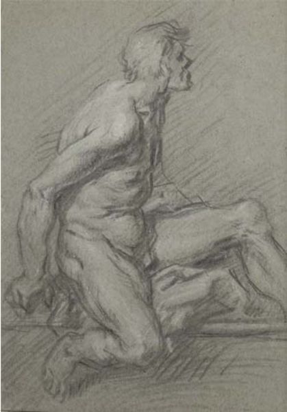 | Study of a seated male nude in profile to the right | |