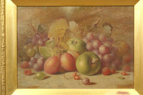Still Life, Apples, Plums, Grapes and Raspberries