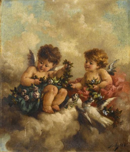 | AMORINI AND BILLING DOVES; AMORINI MAKING A GARLAND | |