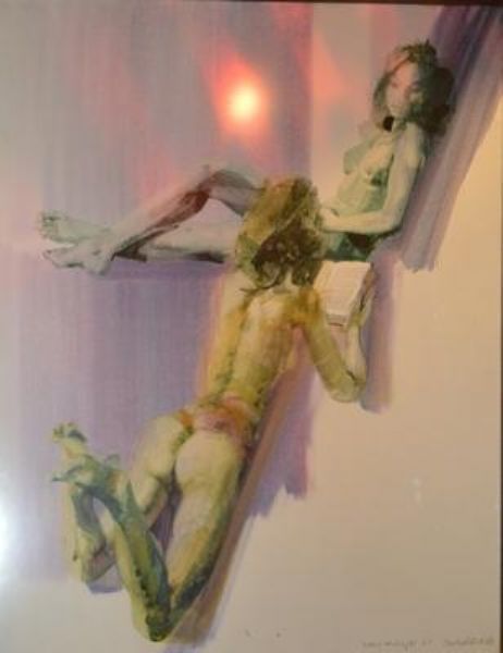 BURNING THE MIDNIGHT OIL STUDY IN GREEN AND PURPLE