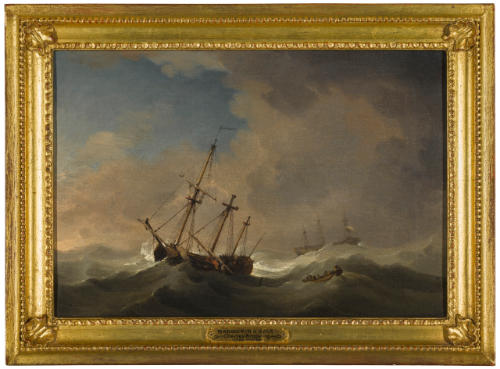 A FLAGSHIP SHORTENING SAIL IN A GALE
