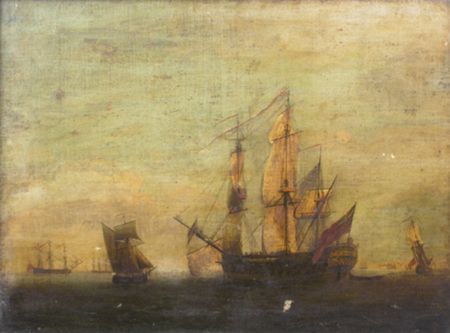 A TWO-DECKER AND OTHER SHIPPING OFF A COASTLINE