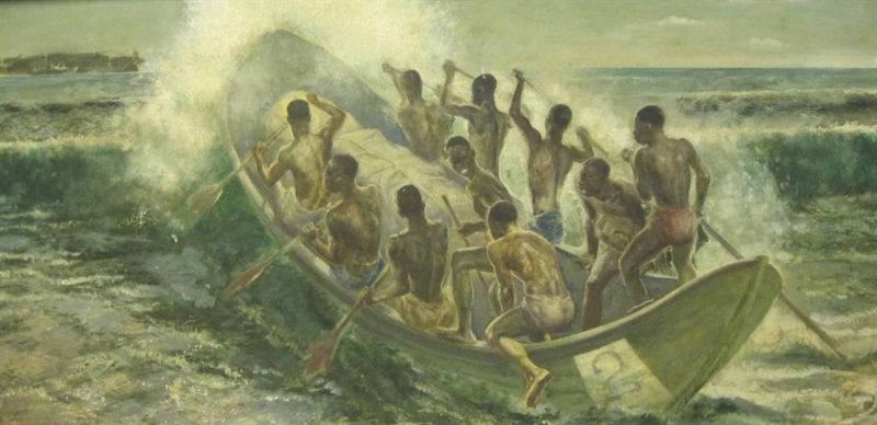 Natives in a Boat taking out provisions to a Ship
