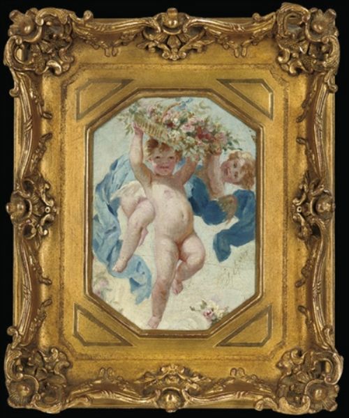 Oil on paper laid down on board, octagonal