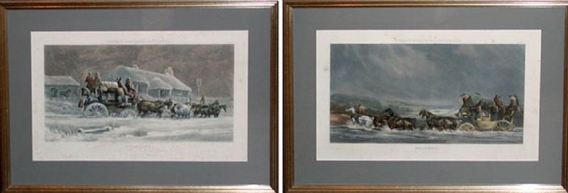 Aquatint hand-colored, 2 items