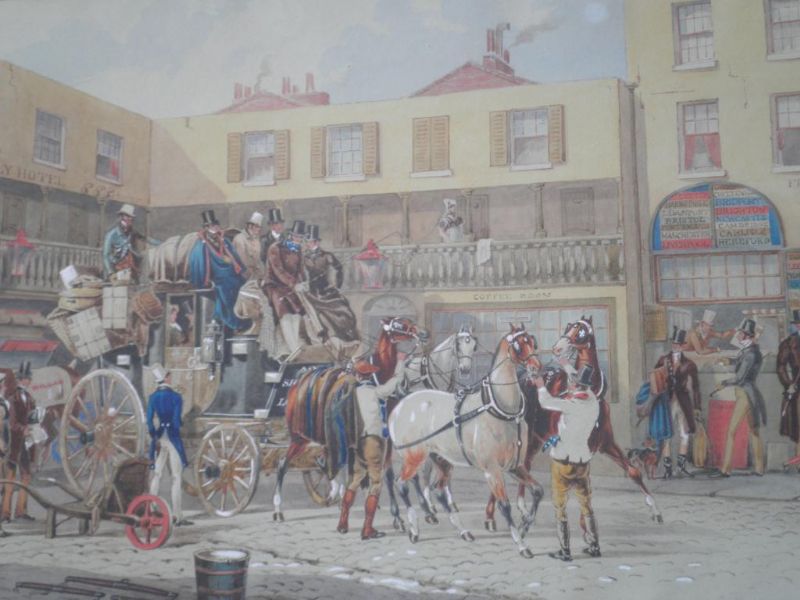 Stage coach and horses at inn