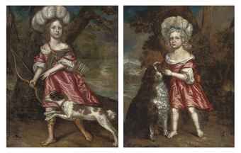 | Portrait of a young girl as Diana, full-length, with a dog in a landscape, a river beyond; and Portrait of a young girl, full-le | |